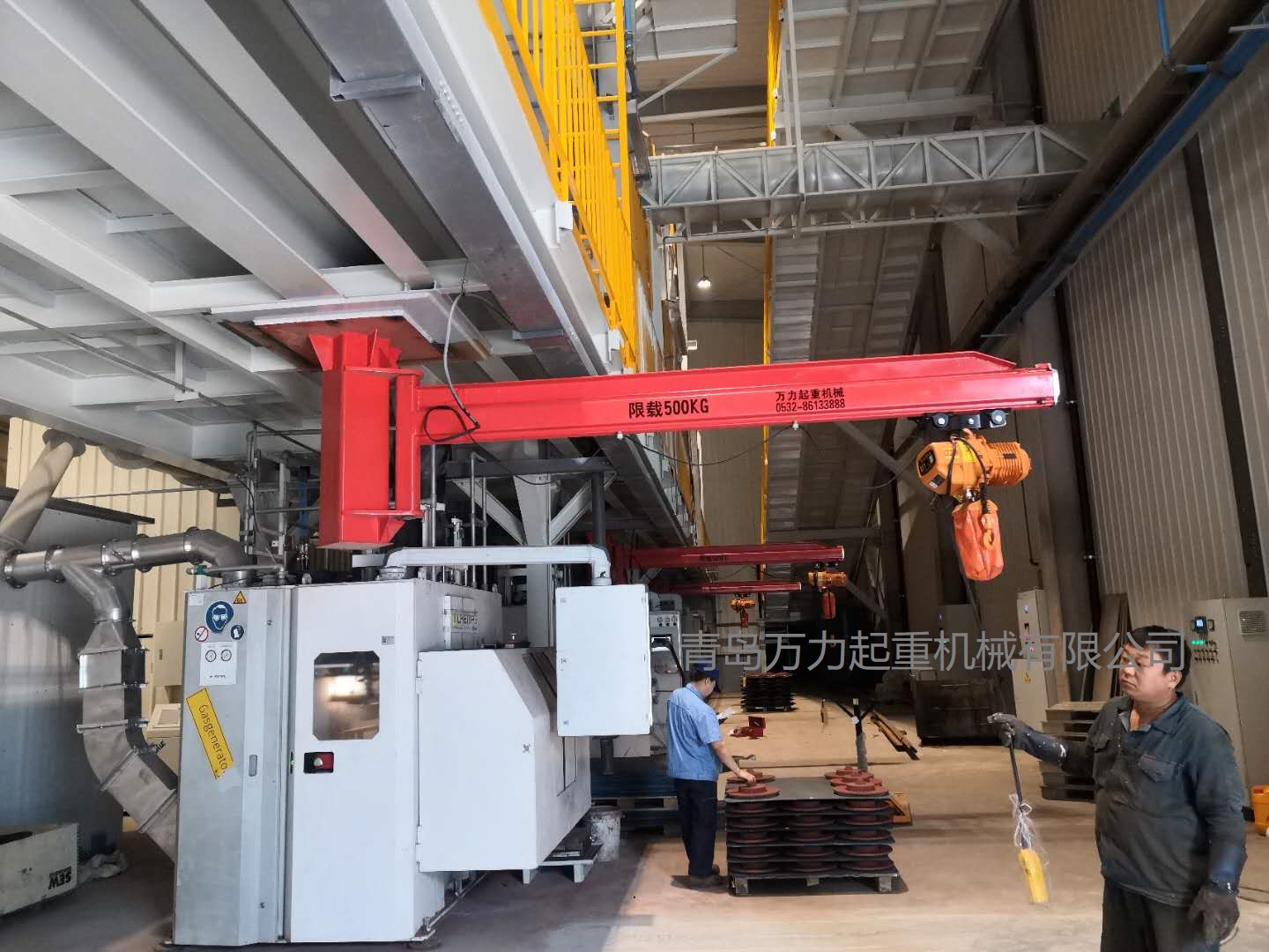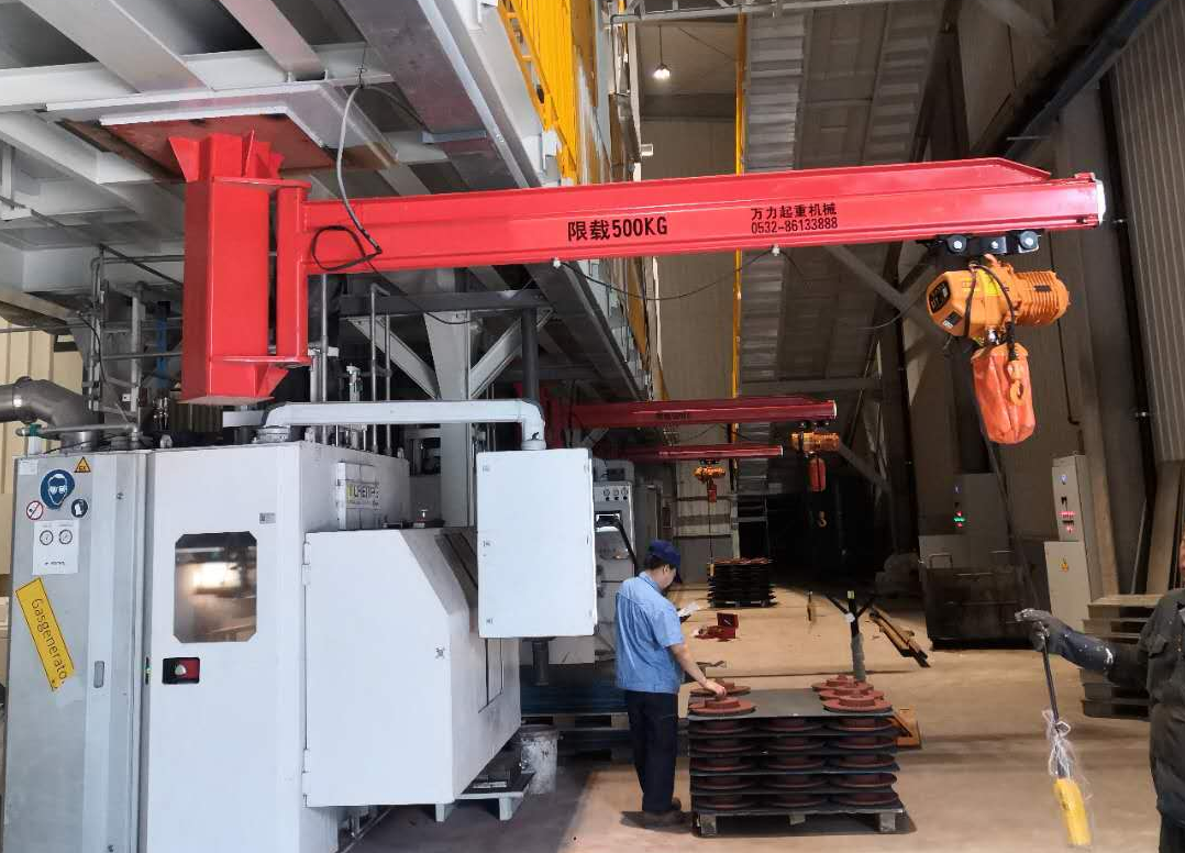 墻壁式旋臂起重機(jī)(墻壁吊)由支撐架、旋臂設(shè)備及環(huán)鏈電動(dòng)葫蘆等構(gòu)成。懸壁固定不動(dòng)在墻面或水泥柱上,可依據(jù)客戶(hù)要求開(kāi)展旋轉(zhuǎn)。旋轉(zhuǎn)一部分分成手動(dòng)式旋轉(zhuǎn)和電動(dòng)式旋轉(zhuǎn)。環(huán)鏈電動(dòng)葫蘆安裝在懸壁路軌上,用以吊裝吊物。旋臂起重機(jī)是為適應(yīng)現(xiàn)代化生產(chǎn)而制作的新一代輕型吊裝設(shè)備,配合了可靠性高的環(huán)鏈電動(dòng)葫蘆尤其適用于短距離,使用頻繁,密集性吊運(yùn)作業(yè),具有高效、節(jié)能、省事、占地面積小,易于操作與維修等特點(diǎn)。