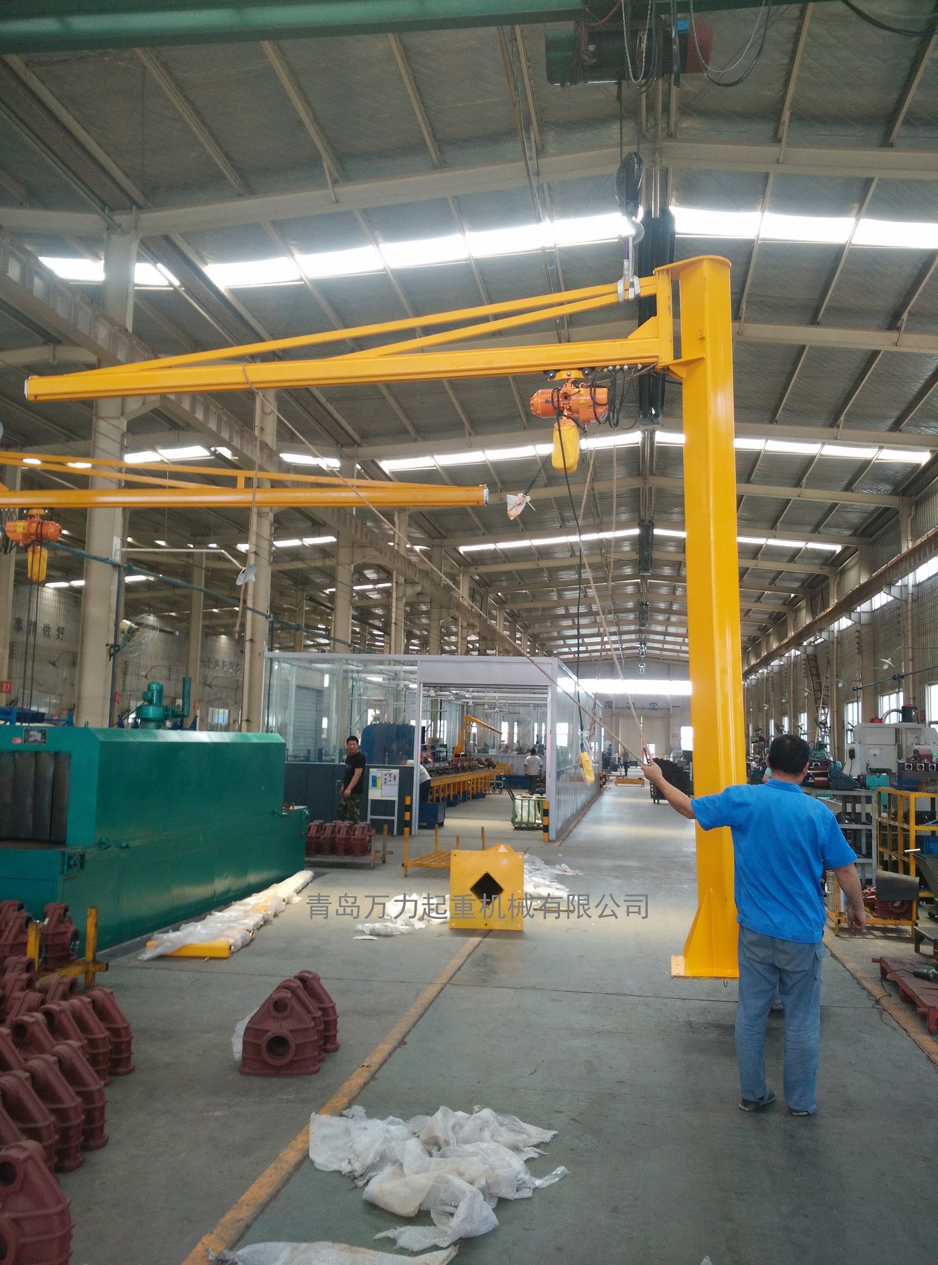 要設(shè)計(jì)方案的專用型起重機(jī)械。具備構(gòu)造新奇、有效、簡易、實(shí)際操作方便使用、旋轉(zhuǎn)靈便、安全作業(yè)室內(nèi)空間大等優(yōu)勢(shì),是環(huán)保節(jié)能高效率的原材料吊裝武器裝備??善毡檫\(yùn)用于廠礦、生產(chǎn)車間的生產(chǎn)流水線、裝配流水線和數(shù)控車床的上下左右鋼件及庫房、港口等場(chǎng)所的吊物吊裝。本機(jī)由立桿、旋轉(zhuǎn)懸臂及環(huán)鏈電動(dòng)葫蘆等構(gòu)成。立桿下方固定不動(dòng)于混凝土基本上,懸臂旋轉(zhuǎn),可依據(jù)客戶要求開展旋轉(zhuǎn)。