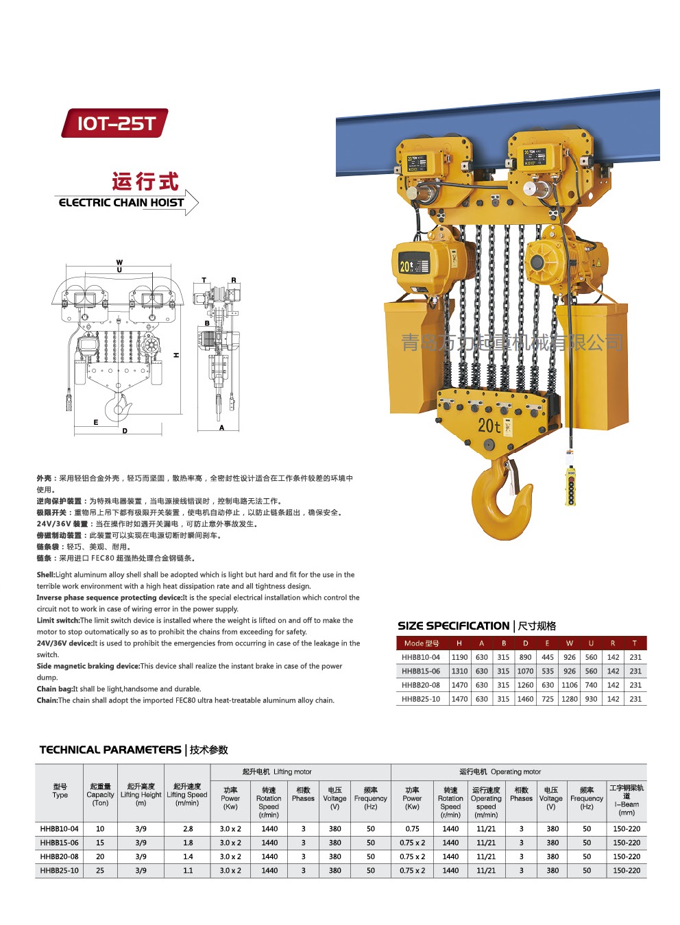 鏈條:采用進(jìn)口FEC80超級(jí)加熱處理合金鋼鏈條。在雨水、海水、化學(xué)品及其他惡劣狀況下使用安全無慮。