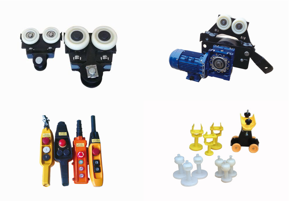 Ⅲ、安裝小車、吊線滑塊或電動驅動裝置,安裝中間緩沖器,安裝防撞限位端蓋和軌端電纜夾。